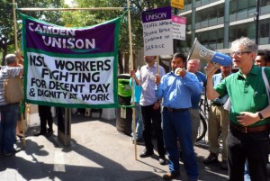 Five days later the company came back with a proposal of a 2.6% rise this year, as opposed to the previous 4% and a pledge for future pay increases to rise in step with the London Living Wage, pegged since May of last year at £8.30 an hour. The response of the workforce to the offer, which the branch made sure was swiftly circulated to members, was a unanimous ‘NO’ with 121 members voting in a paper ballot over the space of less than 48 hours between 30 July and 1 August. this is from http://camdenunison.org.uk/