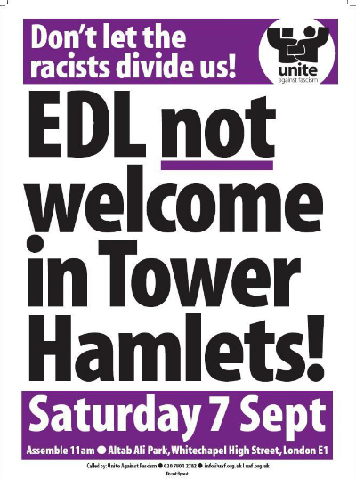 We want to show the EDL that they are not welcome in Tower Hamlets or any other part of London. We want a vibrant demonstration of multi- cultural East London.