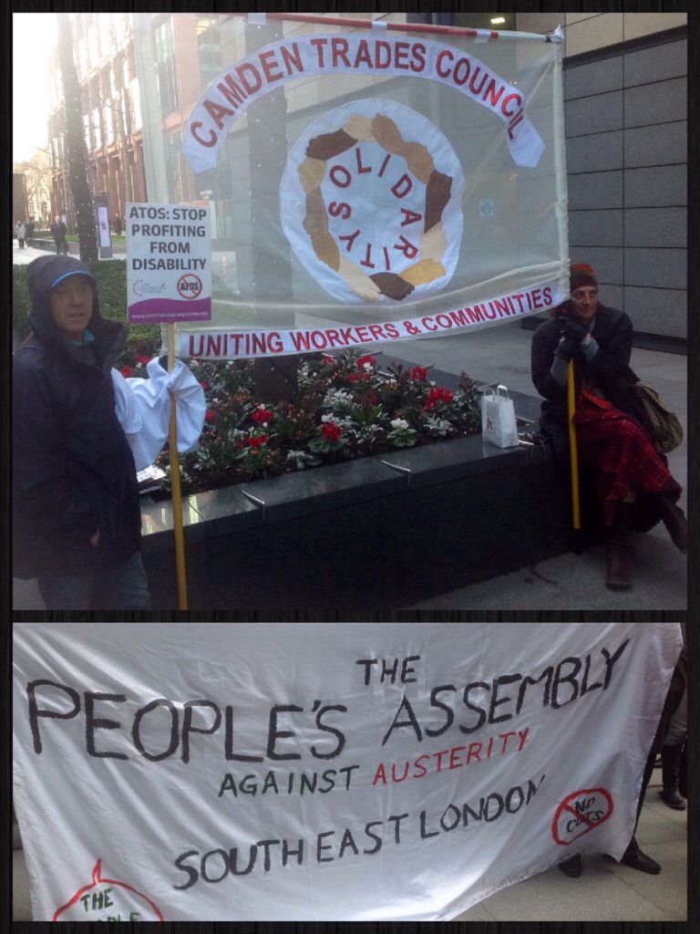 Camden TUC supporting the day of protest against ATOS 19Feb 201419 Feb 2014Add a comment Camden trades council was at ATOS HQ here is some photos of the day by Philip Lewis from Camden UNISON Share this: Click to share on X (Opens in new window) X Click to share on Facebook (Opens in new window) Facebook More Click to email a link to a friend (Opens in new window) Email Click to share on Tumblr (Opens in new window) Tumblr Like Loading...