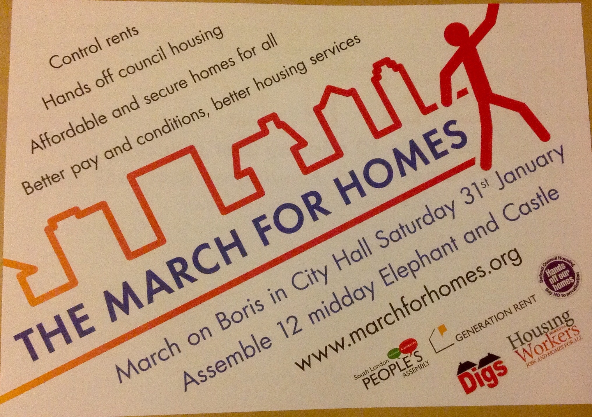 We are asking London trade unionists and Trades Councils, to support the March for Homes 31 Jan 2015. The March is called by Defend Council Housing and the South London Peoples Assembly – see leaflet attached.