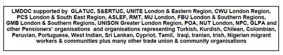 Send donations to – LMDOC, Ruskin House, 23 Coombe Road, CR0 1BD