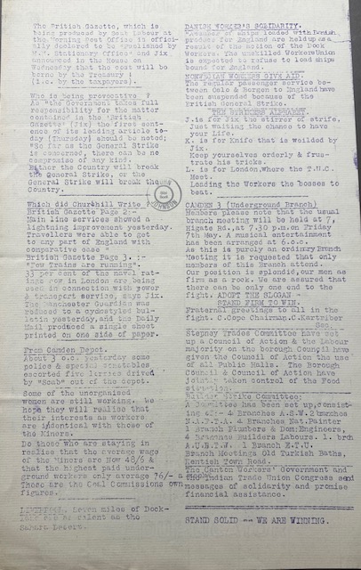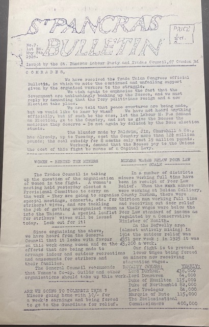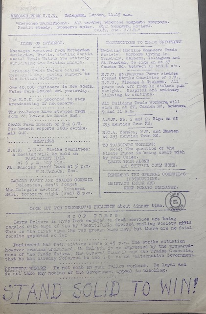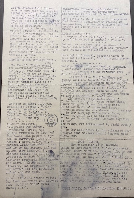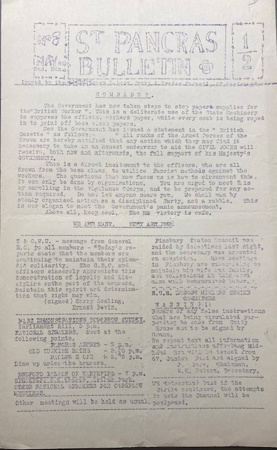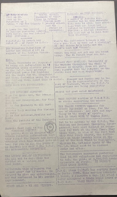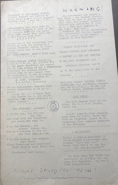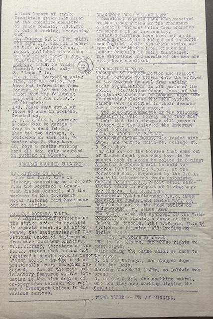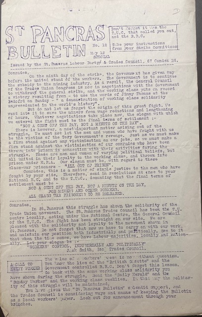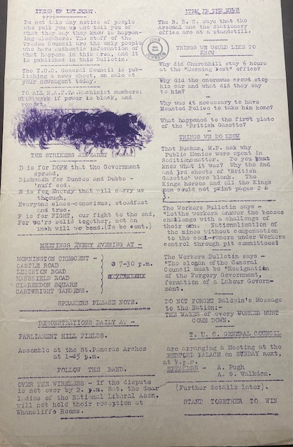 During the General Strike, 4 – 12 May 1926 the Trades Council published a daily bulletin. Below are copies of the bulletin.